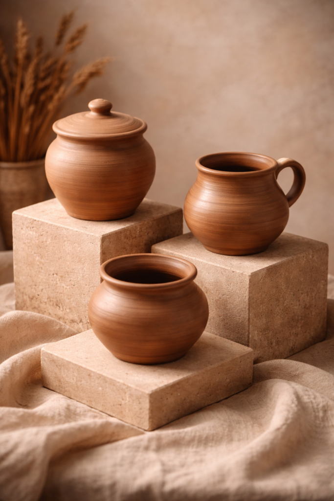 Clay cooking pots bring food back to its most natural state. Made from pure earth and shaped by hand, clay pots cook gently and evenly, allowing flavors to develop slowly and fully—without the need for artificial coatings or chemicals.
